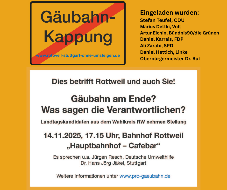 Alle sind aufgerufen zu kommen und ihr Interesse an der Gäubahn zu zeigen!